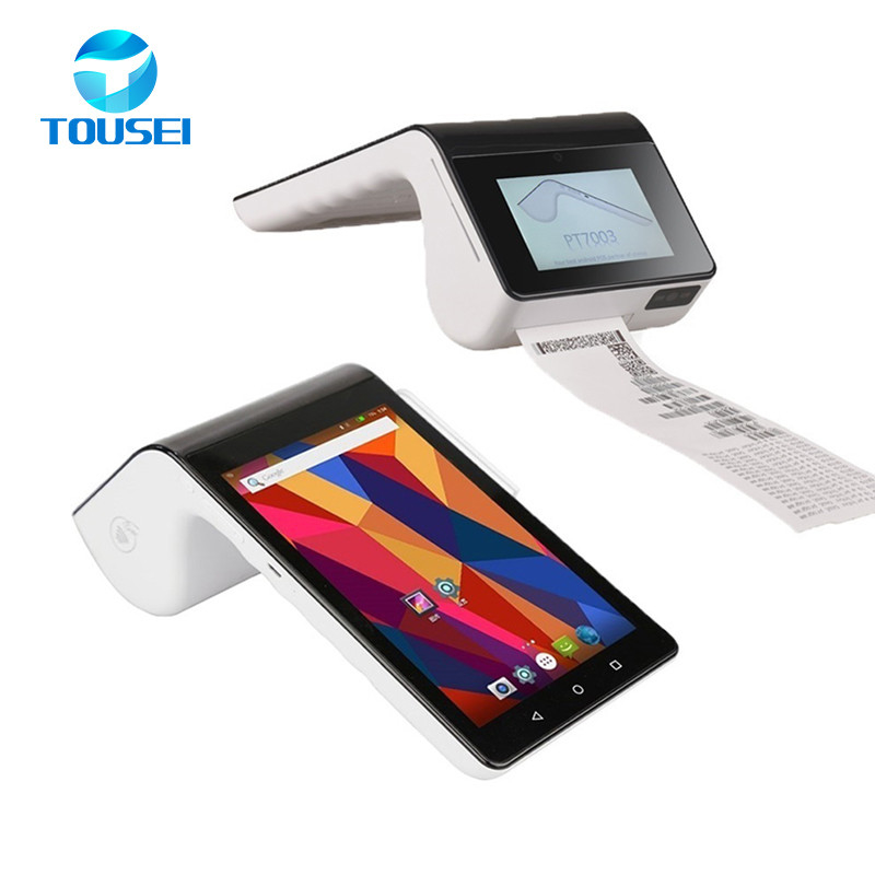 Terminale POS mobile: Android 7+1G+8G+7" touch screen principale+3.5" screen+58mm printer+NFC+IC card+Camera+4G+WIFI+BT; MSR, Scanner, 2G+16G sono opzionali.